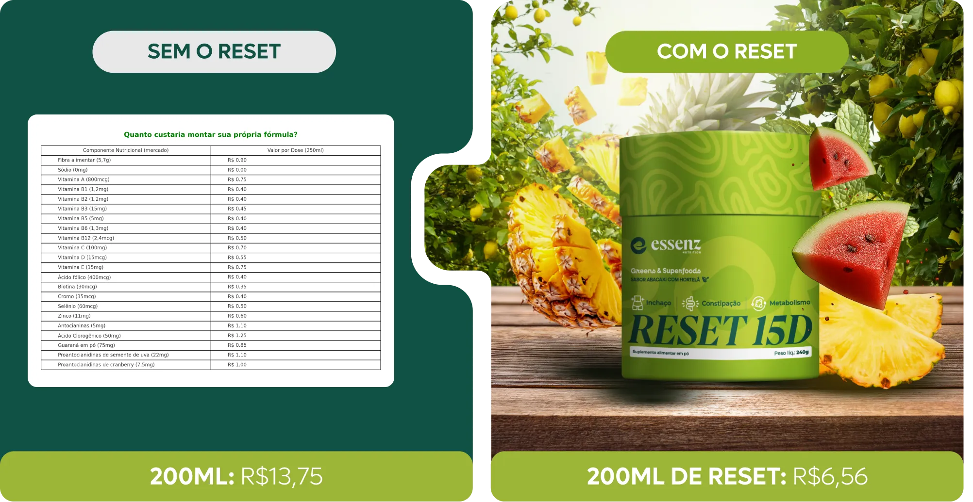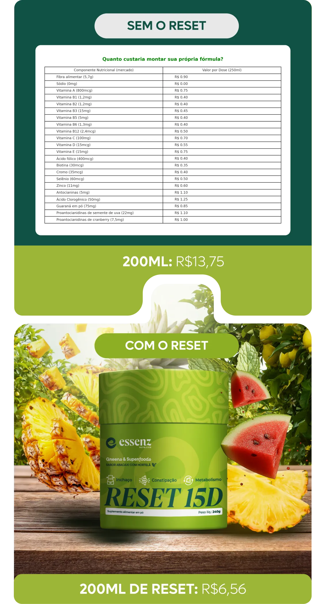 Hoje você pode levar o Reset 15D com até 25% de desconto e ainda ganha mais 1 de brinde! 😍