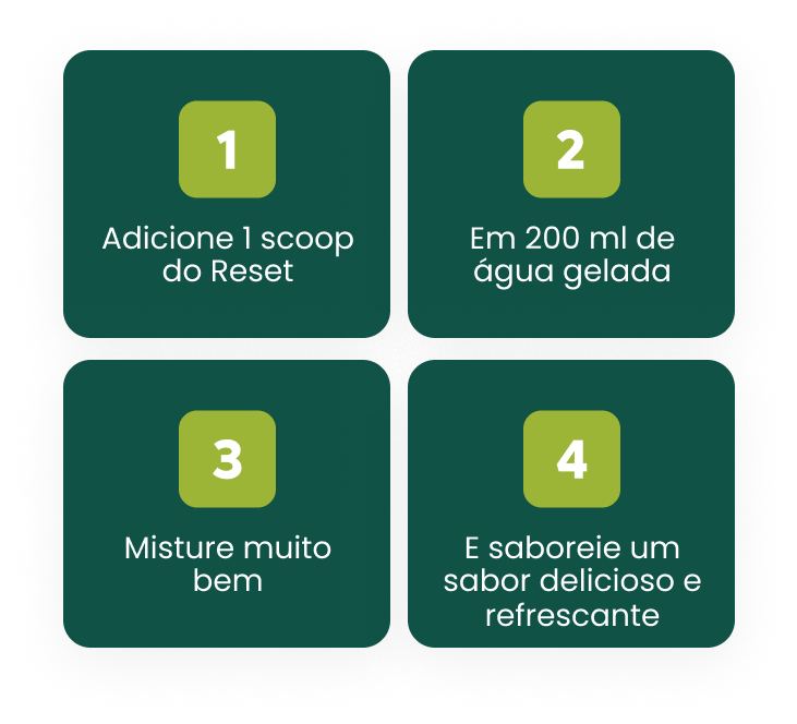 Com 33 superfoods, o RESET 15D virou meu ritual matinal. Um scoop, 200ml de água e pronto: intestino funcionando bem e metabolismo acelerado é sinônimo de corpo desinflamado e barriga desinchada